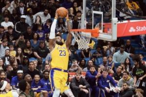41岁还几乎平筐!詹姆斯埋伏底线接东契奇传球双手暴力空接!