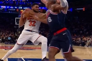 冲击力!唐斯强攻内线 对抗防守打进加罚一举扳平比分