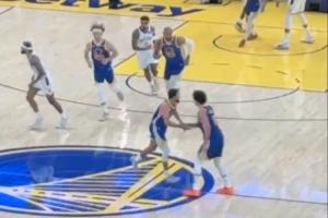 大哥很欣慰!小桂子空位不投 给大空位库里 库里三分轰进前去击掌