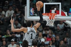 潇洒!索汉突破吊传 文班起飞转身单臂空接暴扣