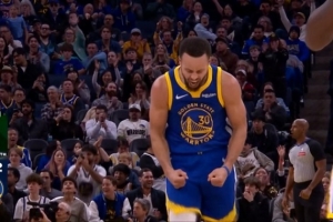 乘胜追击!库里强攻得手 随后拼下后场篮板长传助桑托斯反击打中