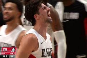 文班怒吼庆祝!哈珀二次进攻打中 马刺轰出16-3追到2分打停开拓者