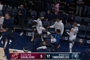 先发制人!迪文岑佐三分命中 森林狼开场7中7轰17-5打停骑士