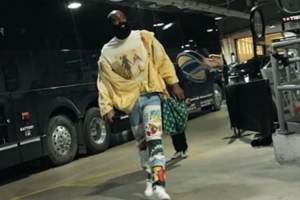 登哥你不要太帅!哈登嘻哈风造型抢镜 亮黄外套搭花牛仔潮范十足
