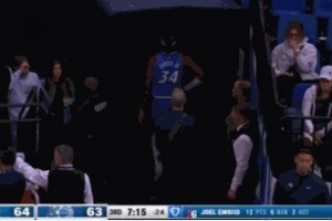 GIF-恩比德顶翻小卡特扣篮2+1