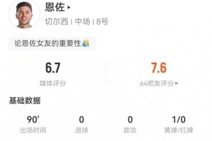 体育资讯2月15日讯 切尔西本轮英超0-3完败布莱顿,恩佐本场数据如下: