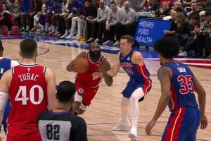 追平关键一球!哈登造成邓罗犯规打成2+1 活塞挑战失败