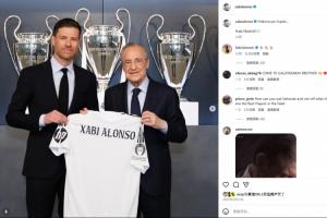 阿隆索社媒置顶仍是签约皇马时的动态,并配文:历史正待书写...