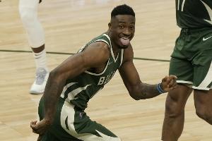 哥哥来一个!字母哥哥空切篮下 无人盯防轻松上演双手扣篮