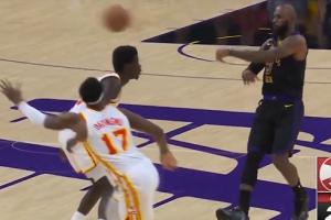 我勒个骚邦!詹姆斯左手重传直塞 范德彪转头就接到球轻松上篮