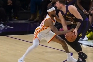 下手必被抓!沃克盯防东契奇被造三分犯规 老鹰挑战失败