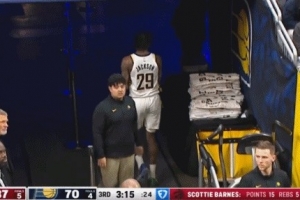自己脚下拌蒜!昆顿·杰克逊运球不慎崴脚 短暂休息后回更衣室