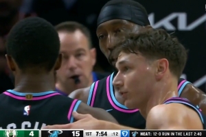 下马威!阿德巴约自投自抢一打三强起还加罚 热火12-0打停绿凯