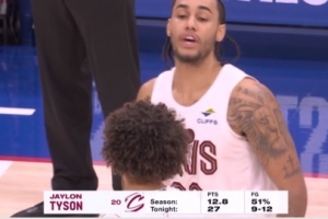 得分平赛季纪录!泰森迎着恩比德压哨高抛命中 个人27分