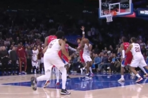 关键判罚!莫布里上篮造成乌布雷犯规 76人挑战失败