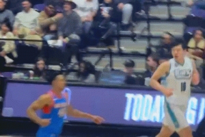 当背景了!队友被过干净了 杨瀚森补防被扎伊尔·史密斯隔扣