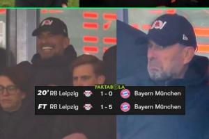 高兴早了……莱比锡领先时克洛普大笑庆祝,随后被灌5球一脸苦闷