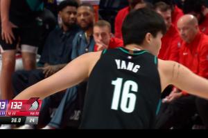 啊!你吹这个!杨瀚森上场三分钟 第一次接球被吹了走步!
