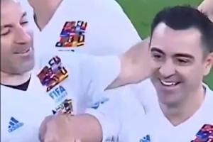 传奇连线!哈维与托蒂两人配合,传奇赛打穿对面防线