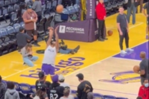 大秀绝活儿!斯玛特背对篮筐后仰超高弧度出手 篮球应声入网
