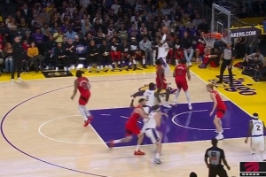 这球够稳!詹姆斯背打巴恩斯命中翻身后仰跳投 湖人反超猛龙