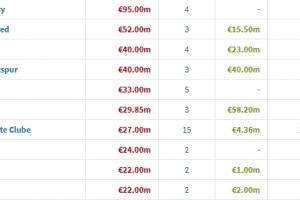 截至目前,曼城已签下塞梅尼奥和格伊,分别花费7200万欧和2300万欧。冬窗转会支出前十英超占了5席。