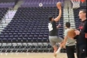 小吧直击|杨瀚森赛前苦练进攻 接球顺下完成单臂扣篮