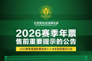 俱乐部将于春节假期后启动2026赛季年票发售工作