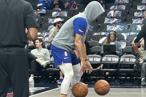 勇士球星库里今日赛前手持安踏欧文3代“中国新年”配色球鞋入场,并在训练中上脚。