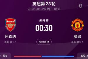 机会又来了!曼联本轮若取胜即可确保进前四,但对手是阿森纳