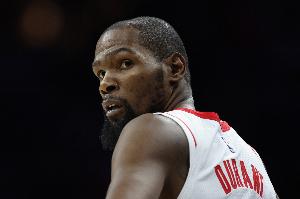 上半场比赛,杜兰特进攻效率不高,但他在篮板球方面做出了不少贡献;他出战17分钟,13投4中,三分2投0中,罚球5罚4中,得到12分7篮板(2前场板)1助攻1盖帽,出现2次失误,正负值-2。