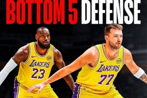 湖人防守倒数第六但战绩28胜17负 倒数前五总战绩61胜168负