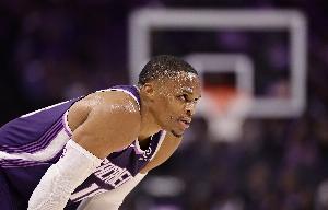 效率不行!威少19投仅6中拿到14分4板5助出现6失误 正负值-17