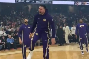 试图证明自己!东契奇赛前尝试胯下扣篮 结果下了个蛋😂
