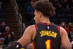 浑身透露着自信!杰伦·约翰逊追身三分命中 老鹰10-0打停绿军