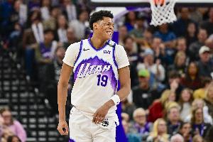 上半场比赛,爵士今年5号秀贝利发挥不错,攻防两端都有贡献,他出战17分23秒,7中4,三分3中1拿到9分4篮板2助攻1抢断2盖帽。