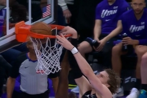 一飞冲天!马尔卡宁接球冲击内线 对抗追梦滞空双手暴力隔扣