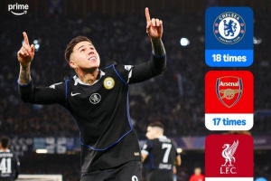 体育资讯1月29日讯 欧冠联赛阶段最后一轮比赛,切尔西客场3-2击败那不勒斯,切尔西排名联赛阶段第6位,直接晋级16强。据媒体统计,切尔西18次晋级欧冠16强,英格兰球队之中最多。