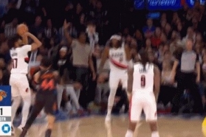 打停尼克斯!罗威抢到前场篮板助攻 谢顿·夏普虚晃后横移三分!