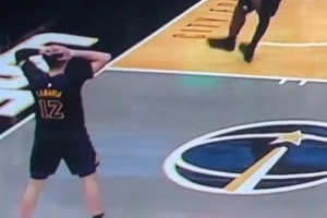 这是41岁?詹姆斯轻盈空接背扣 拉拉维亚抱头不敢相信