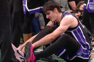 还挺硬!雷诺抛投2+1&落地踩在科塔脚上崴脚 系了系鞋带接着打