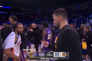 这俩哥们太逗了🤣东契奇赛后竖中指和布伦森友好示意
