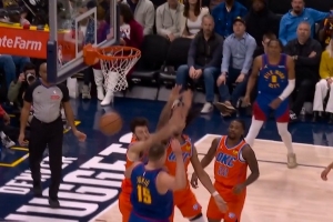 脑后长眼!约基奇不看人脑后助攻斯潘塞底角命中三分球