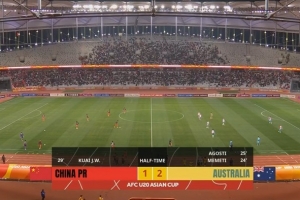 体育资讯2月18日讯 北京时间2月18日晚19时30分,2025年U20亚洲杯小组赛A组末轮在深圳宝安体育中心体育场展开角逐,中国男足U20主场迎战澳大利亚U20。上半场国青80秒连丢2球,蒯纪闻精彩凌空抽射扳回一城,国青暂时1-2落后澳大利亚。