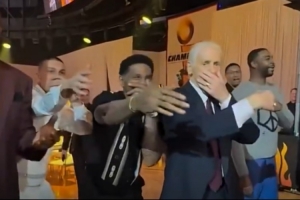 贼有范!热火庆祝06夺冠20周年 帕特·莱利与冠军成员们热舞庆祝