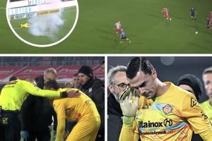 这名球迷属于维京人球迷团体,但并非此前因烟火在手中爆炸而住院的罗马尼亚球迷。