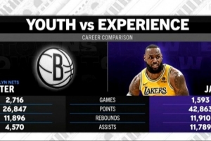 转播方晒詹数据对比:詹姆斯得分、篮板和助攻都多于篮网全队之和