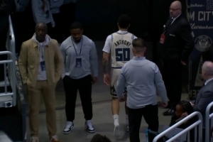 这挺亏!科尔·安东尼垃圾时间崴脚受伤 光脚走回更衣室