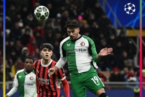 体育资讯2月19日讯 费耶诺德在本轮欧冠附加赛次回合1-1战平米兰,总比分2-1晋级。