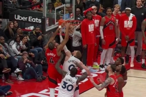 毫厘之间!奎克利抛投涮出巴恩斯补扣被吹干扰球 猛龙挑战失败